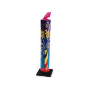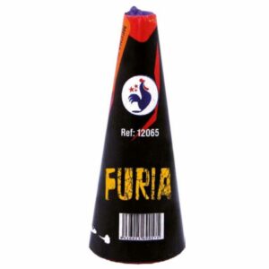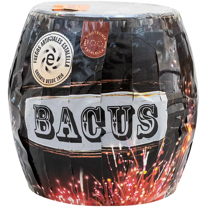 Gran batería de fuentes de gran duración y de varios surtidores de efectos variados y luces multicolor con cracker, silbidos y final de 3 carcasas