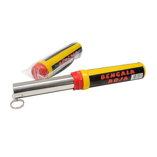 Bengala de anilla de llama roja intensa y humo.