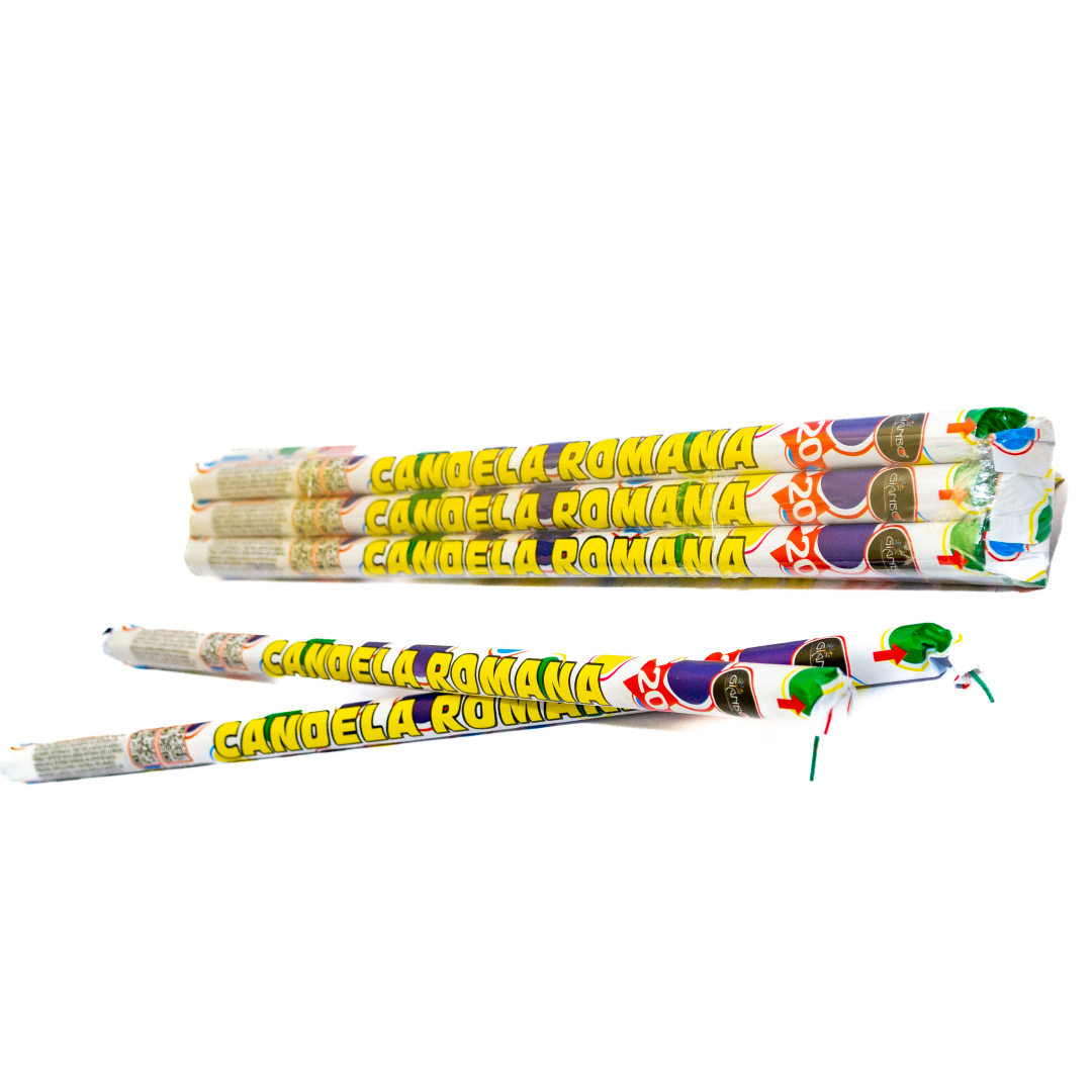 Candela de 20 Disparos. Craqueo intenso con bolas de colores