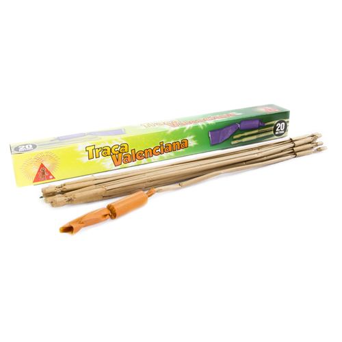 Típica traca valenciana con una gran detonación final. Disponibles en bolsa con división de riesgo 1.1G y en cajita con división de riesgo 1.4G.